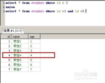 union 对两个结果集进行并集操作,重复数据只显示一次