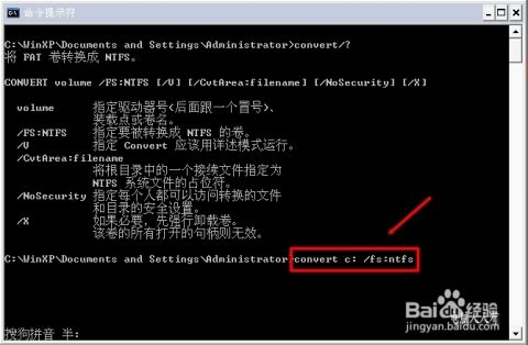 使用命令也能将磁盘分区的模式由FAT32转换成NTFS模式。具体的使用方式和参数可以使用以下命令查看:convert/?例如对C盘进行模式转换命令为:convert c: /fs:ntfs (如果要在C盘进行升级安装Windows7操作系统(原版安装文件,ISO扩展名),就需要这个对磁盘NTFS模式转换的操作。