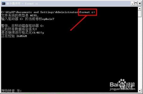接收到命令之后,系统就会检测磁盘分区,为了保险起见,还要用户输入标卷,并且使用 Y 或者 N 来确认是否要继续进行操作。