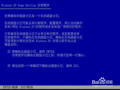 此时可以使用上下方向键移动白色选框到要安装系统的分区上面,根据提示按键盘字母键区的 D 键(删除这个被选中的分区);出现如下图所示的屏幕提示,按 Enter(回车键)键继续操作。
